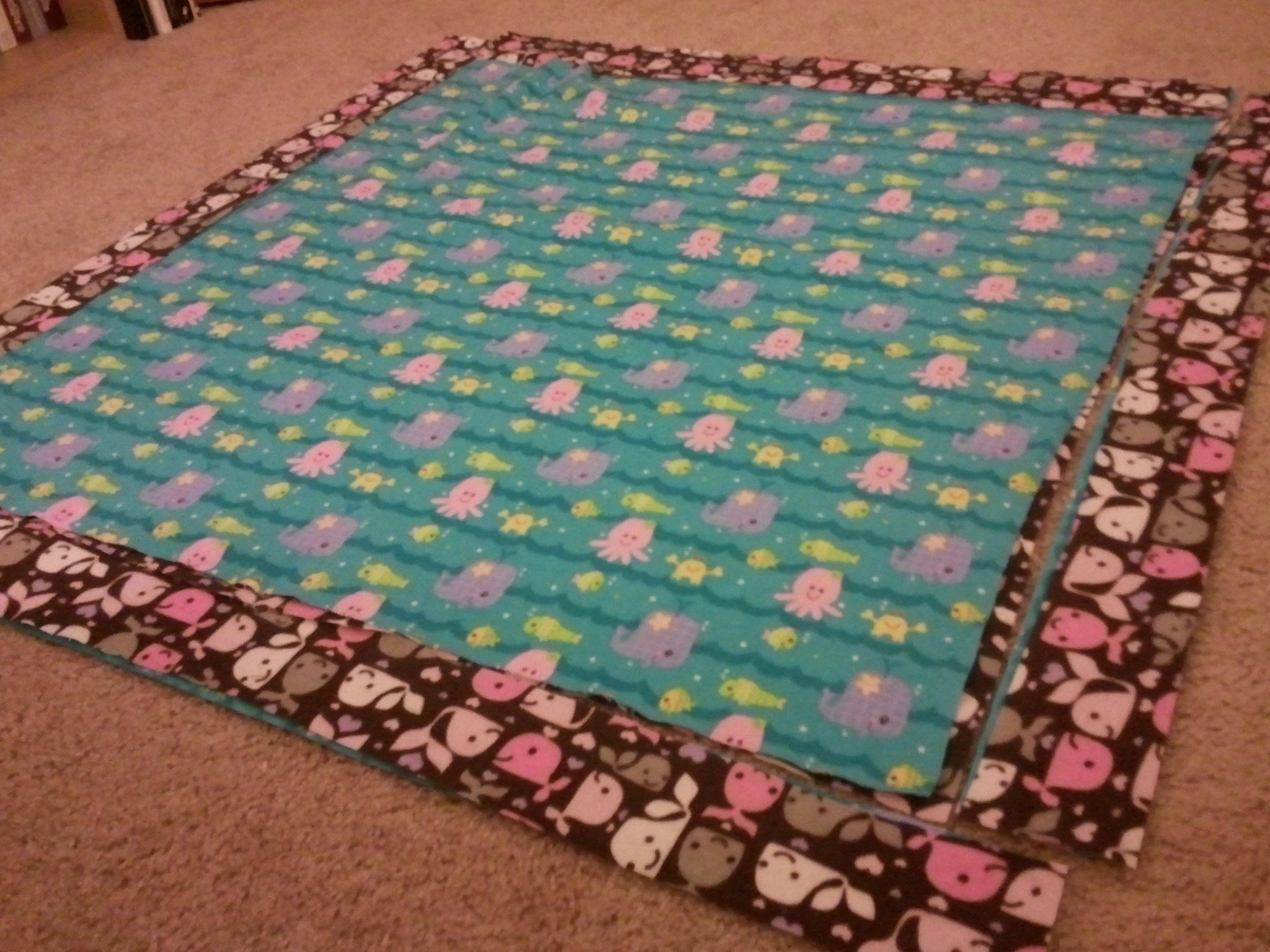 A friend is interested in sewing but hasn’t yet had the time/opportunity to brush up on her skills. She had a friend last spring who was having a baby, and she bought adorable fabric for making a baby blanket, but she never made it. So she commissioned me to do it.
